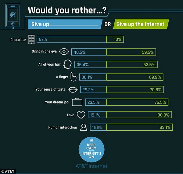根據最新的一份調查,超過三分之一的美國人寧愿剁掉手指也不愿他們的生活沒有互聯網。