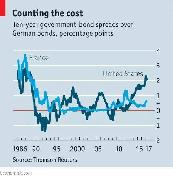 美國也許是世界上最大的經濟體,但是在近期,美國政府比其他國家的借貸成本更高。美國十年期的國債收益高出英國、法國、新加坡,甚至意大利。